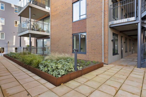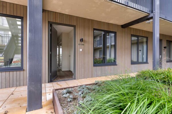 Schuttershof bestaat uit 30 appartementen, opgeleverd in 2024, en biedt een scala aan gedeelde voorzieningen. Op de begane grond bevindt zich de ‘Hofkamer’, een sfeervolle gezamenlijke ruimte met zitgedeelte, complete keuken en toilet, perfect voor gezellige momenten met medebewoners of familie. Daarnaast is er een logeer- en zorgruimte voor gasten of tijdelijke hulp. Buiten wacht een prachtig aangelegde binnentuin, met verschillende zitjes en sfeerverlichting: een groene oase in het hart van de stad.