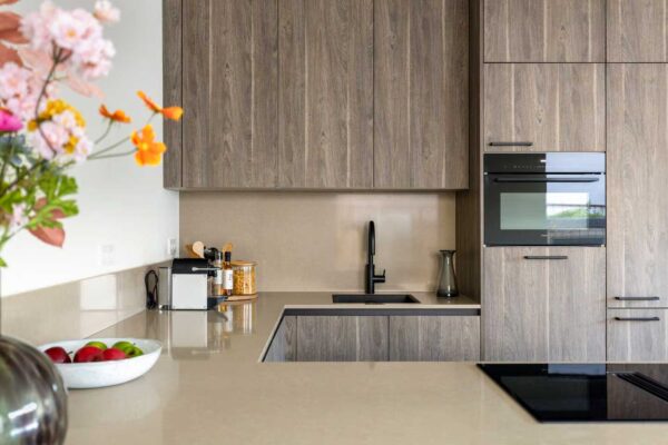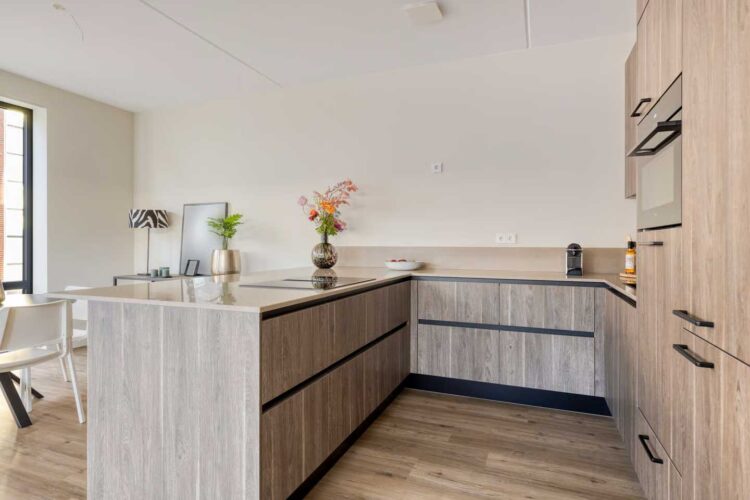 De luxe open keuken is uitgevoerd in een moderne, greeploze stijl met kookeiland. Voorzien van hoogwaardige Siemens Studio Line (2024) inbouwapparatuur, waaronder een inductiekookplaat met geïntegreerde afzuiging, oven, koel-vriescombinatie en vaatwasser op hoogte. Hier kookt u met plezier voor uzelf of uw gasten.