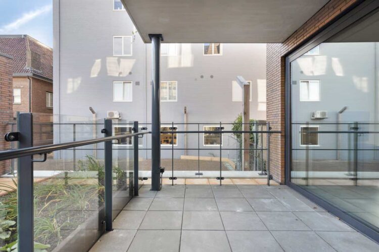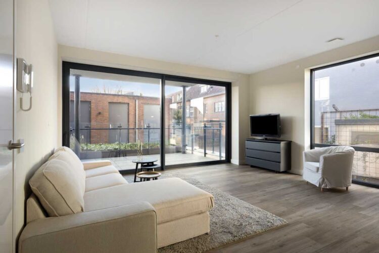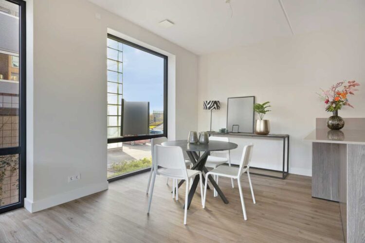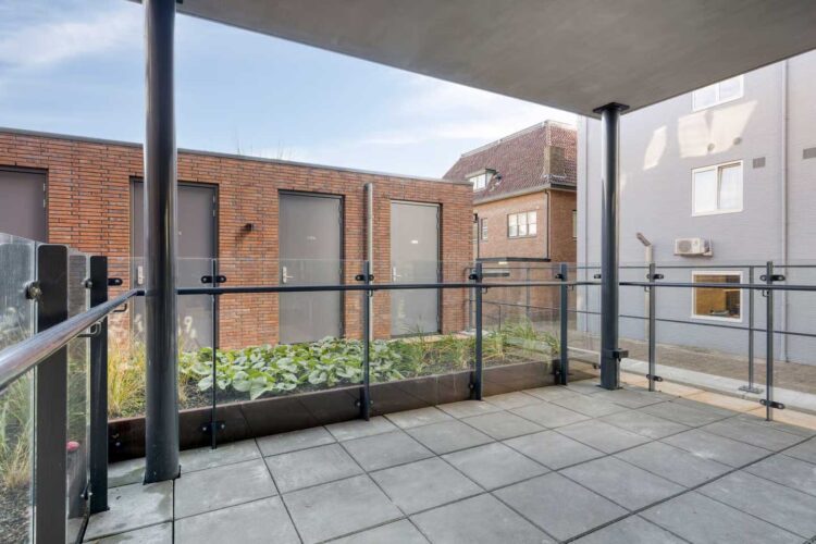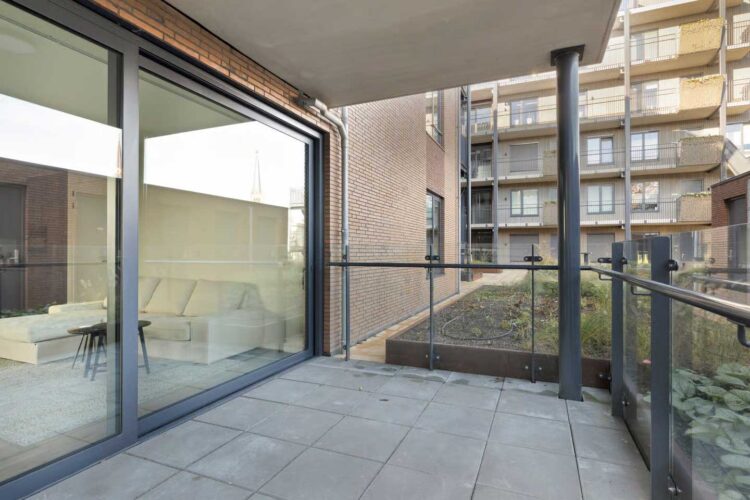 Vanuit de living loopt u direct het zonnige balkon (13 m²) op, gelegen op het noordwesten. Het balkon biedt voldoende plek voor een loungeset én eettafel. Optioneel kunt u met glazen schuifpanelen een serre creëren (vergunningsplichtig).